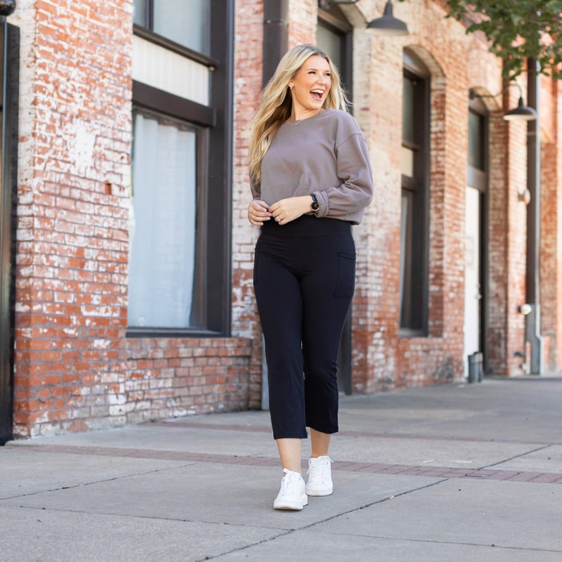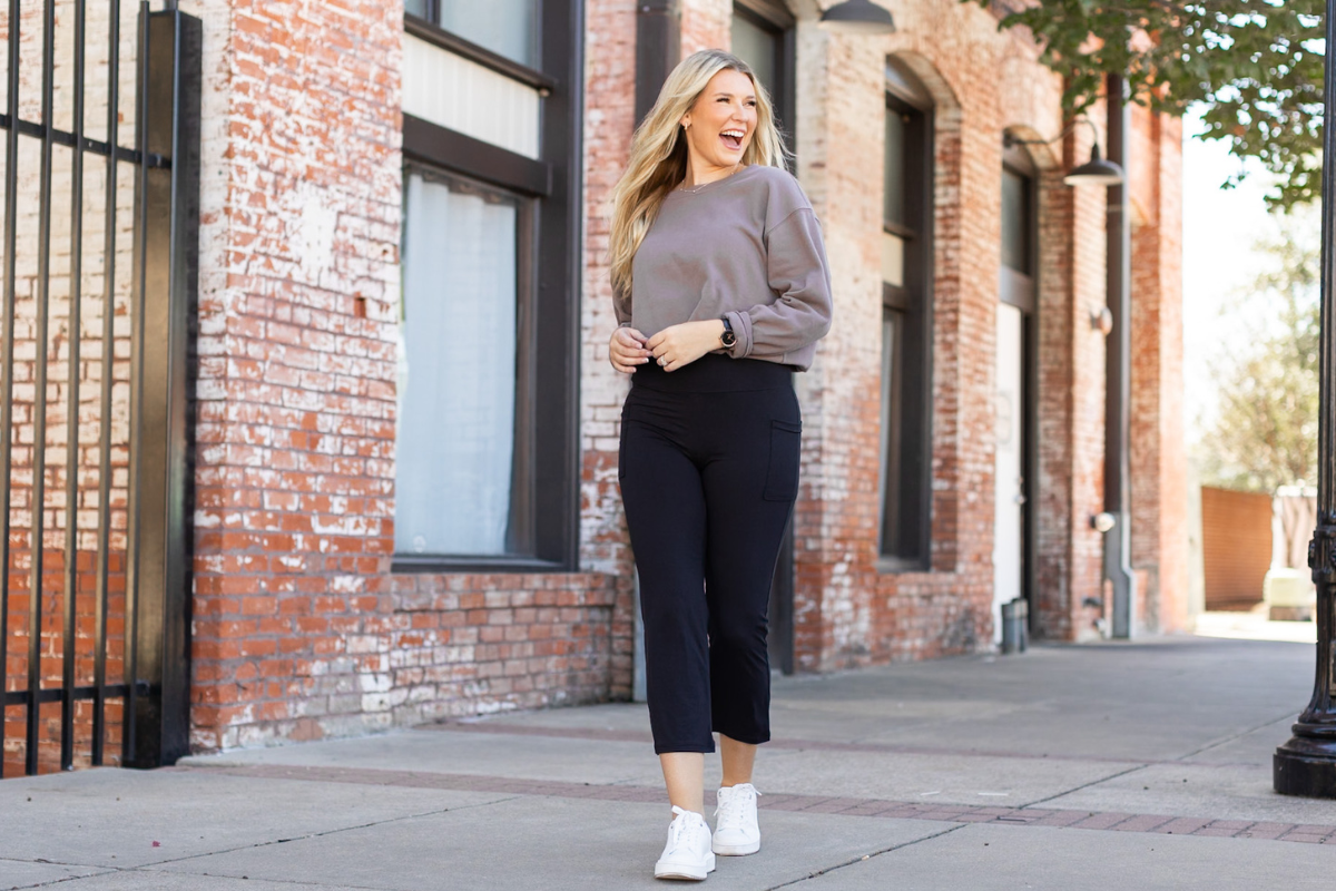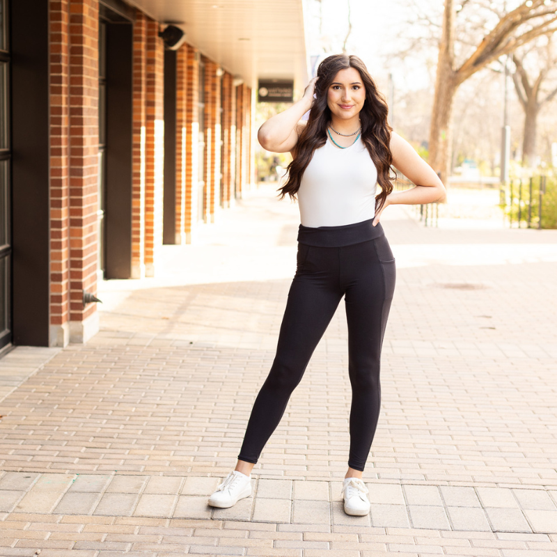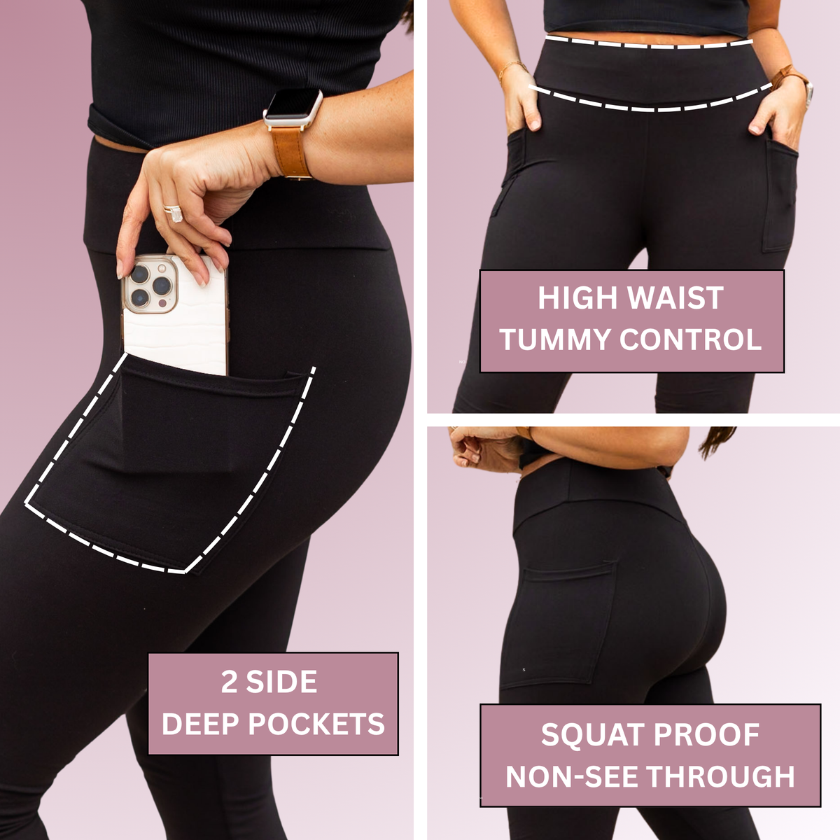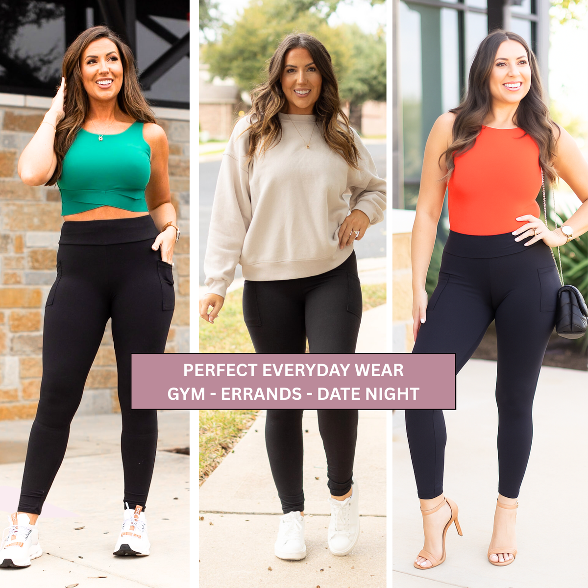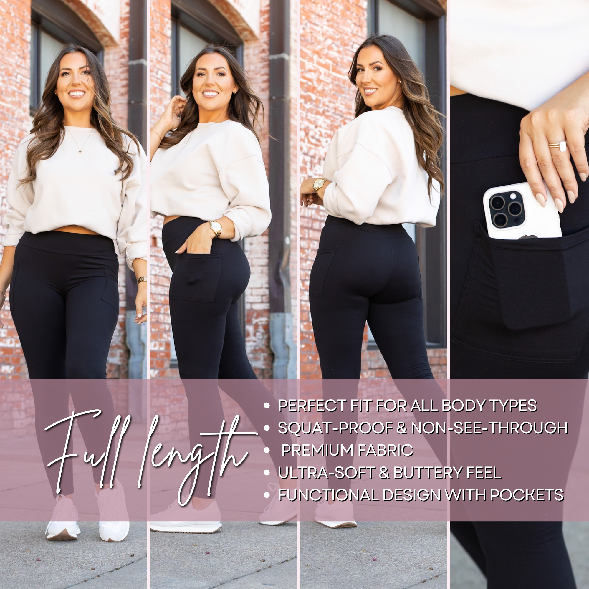 Ready to Ship | The Lilla - Black FLEECE Full Length Leggings with Pockets (Size): S/M (Sizes 4-10) - OS