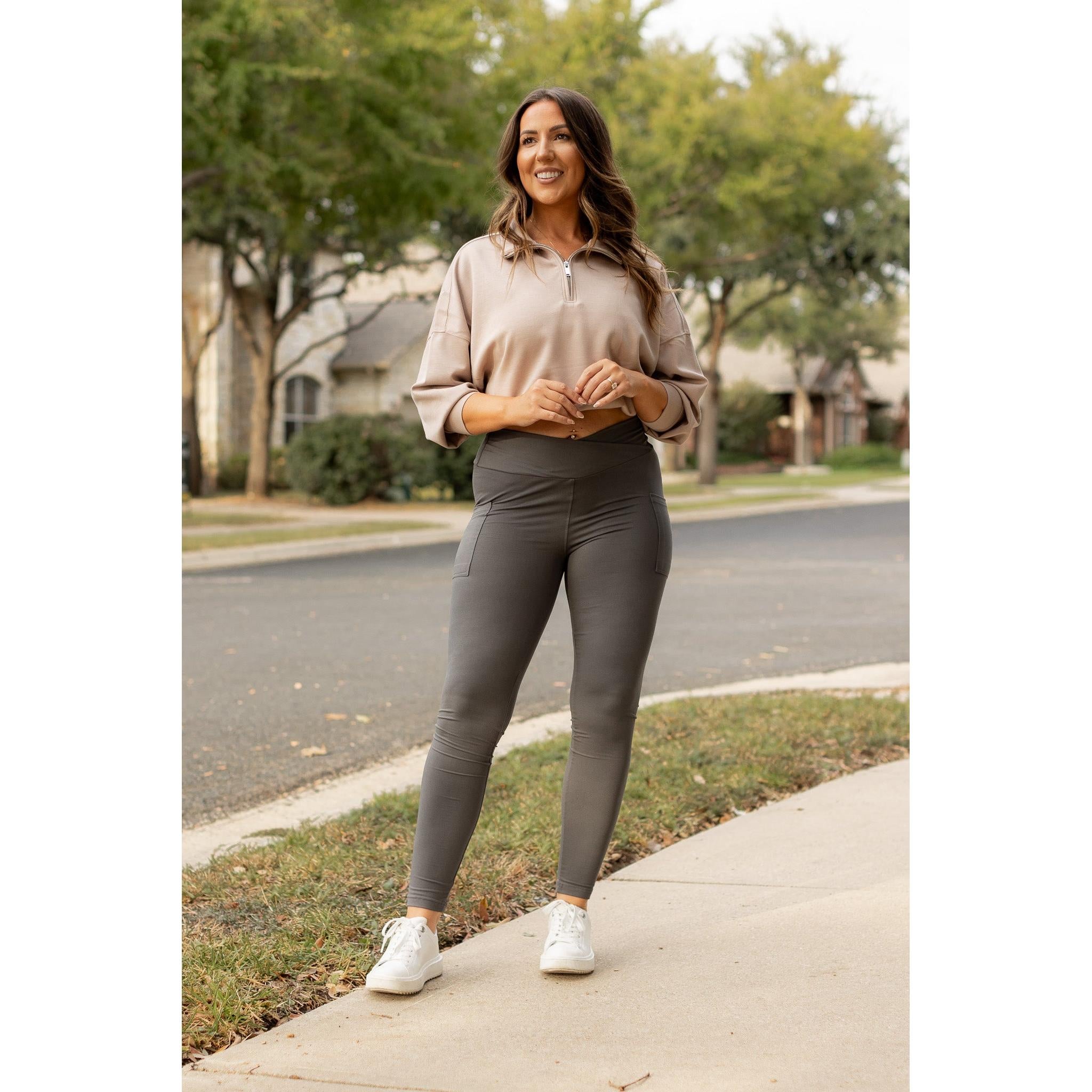 Ready to Ship | The Caitlin - 2 PACK - CHARCOAL Crossover Full Length Leggings with Pockets